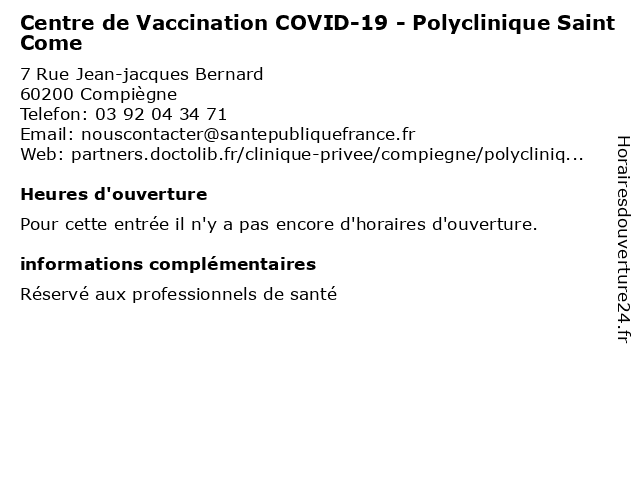 2 Centre de Vaccination COVID-19 - Salle de la Victoire (Distance: 0,46 km) 112 Rue Saint-joseph, 60200 Compiègne 19, centre, covid, covid 19, covid19, de, la, médecin, médecine, médical, salle, test, vaccin, vaccination, vaccins, victoire 3 École Élèmentaire Publique - Saint-Germain Groupe A (Distance: 0,92 km) 66 Boulevard des Etats-Unis, 60200 Compiègne ecole, education, germain, groupe, publique, saint, services, école, élèmentaire 4 École Maternelle Publique - Saint-Germain (Distance: 0,93 km) 97 Rue de Paris, 60200 Compiègne ecole, education, germain, maternelle, publique, saint, services, école 5 Green Acres (Saint Lazare Immobilier) (Distance: 1,68 km) 14 Rue Saint-Antoine, 60200 Compiegne acres, apartment rentals, green, home sales, immobilier, lazare, real estate, saint 6 École Élèmentaire Publique - Saint-Lazare (Distance: 1,75 km) 7 Vermenton, 60200 Compiègne ecole, education, lazare, publique, saint, services, école, élèmentaire |