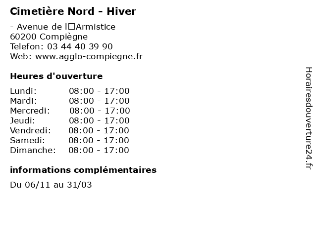 1 Cimetière Nord - Eté (Distance: 0,00 km) - Avenue de l’Armistice, 60200 Compiègne cercueil, cimetiere, cimetière, deuil, eté, mort, nord 2 La Brasserie du Nord (Distance: 1,66 km) 7 Place de la Gare, 60200 Compiegne bar, bistro, bistrot, brasserie, café, du, la, nord, restaurant, restauration 3 Credit du Nord (Distance: 1,69 km) 18 rue Saint Nicolas, 60200 Compiègne credit, crédit, du, l'argent, l'épargne, le crédit, les banques, les prêts, nord 6 Credit du Nord (Distance: 2,02 km) 42 rue de Paris, 60200 Compiègne credit, crédit, du, l'argent, l'épargne, le crédit, les banques, les prêts, nord |
