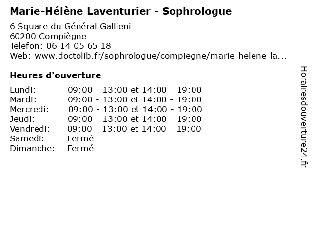 | Lundi | 09:00-13:00 et 14:00-19:00 |
