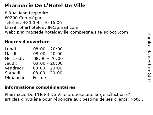 | Lundi | 08:00-20:00 |