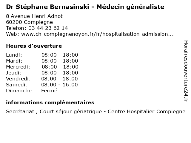 2 Dr Stéphane Lebois - Médecin généraliste (Distance: 3,75 km) 4 Rue Jean Antoine Lère, 60200 Compiègne docteur, dr, generaliste, généraliste, lebois, medical, médecin, soin, stéphane 3 Stéphane Plaza Immobilier (Distance: 4,39 km) 18 rue des Pâtissiers, 60200 Compiegne agence, immobilier, plaza, stéphane 5 Dr Stéphane Van Audenhaege - Médecin généraliste (Distance: 11,29 km) 15 Rue Théophile Havy, 60190 Estrées-Saint-Denis audenhaege, consultation, docteur, dr, générale, généraliste, médecin, médecine, médecins, rendez, santé, stéphane, sur, van, vous 6 Dr Stéphane Lebois - Médecin généraliste (Distance: 17,30 km) 354 Rue Fernand Pennelier, 60190 La Neuville-Roy consultation, docteur, dr, générale, généraliste, lebois, medecins, médecin, médecine, rendez, santé, stéphane, sur, vous |