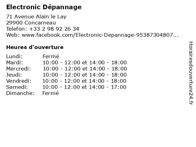 | Mardi | 10:00-12:00 et 14:00-18:00 |