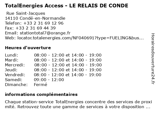 Termes de recherche pour TotalEnergies Access - LE RELAIS DE CONDE:relais, le, de, conde, access, total, gas station, station service, tankstelle, totalenergies |