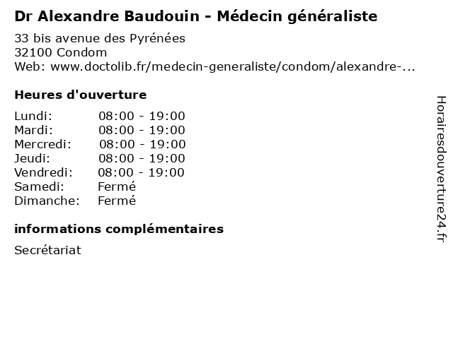 | Lundi | 08:00-19:00 |