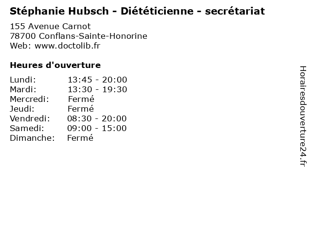 1 Stéphanie Hubsch - Diététicienne - secrétariat (Distance: 5,87 km) 128 Boulevard de l'Oise, 95490 Vauréal diététicien, diététicienne, hubsch, médecins, médicaments, santé, secrétariat, spécialiste, stéphanie 2 Stéphanie Hubsch - Diététicienne (Distance: 0,00 km) 155 Avenue Carnot, 78700 Conflans-Sainte-Honorine consultation, diététicien, diététicienne, docteur, hubsch, med, médecin, médecine, secrétariat, stéphanie, traitement 3 Stéphanie Rouland - Sophrologue (Distance: 0,70 km) 8 Rue Piéplu, 78700 Conflans-Sainte-Honorine medecin, rouland, sante, sophro, sophrologue, stéphanie 4 Stéphanie Berr (Distance: 1,44 km) 5 bis Rue de la Porte de Pontoise, 78700 Conflans-Sainte-Honorine berr, stéphanie 5 Dr Stéphanie Guerin - Médecin généraliste (Distance: 3,43 km) 2 rue de Penthièvre, 78570 Andresy docteur, dr, generaliste, guerin, généraliste, medical, médecin, soin, stéphanie 6 Stéphanie Hubsch - Diététicienne (Distance: 3,66 km) 2 Avenue Philippe Seguin, 95220 Herblay alimentation, dieteticien, diététicienne, hubsch, nourriture, sante, stéphanie |