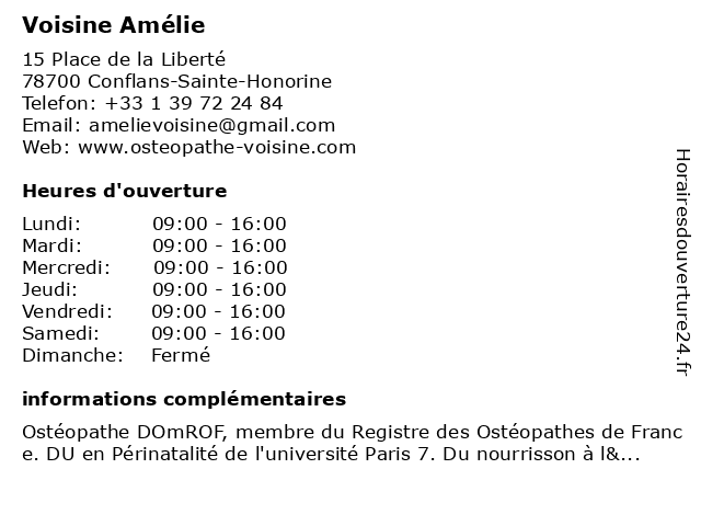 1 Dr Amélie Poidvin - Pédiatre (Distance: 6,56 km) 6 avenue de l'Ile-de-France, 95303 Pontoise amélie, bebe, ch, dr, dubos, nourisson, poidvin, pontoise, pédiatre, pédiatrie, rené 2 Amélie Renard-Darvil - Ostéopathe (Distance: 8,10 km) 257 Rue de Paris, 95150 Taverny amélie, darvil, osteo, osteopathe, ostéopathe, renard, sante, soins 3 Amélie Lacage - Naturopathe (Distance: 11,38 km) 1 Avenue André le Goas, 95110 Sannois amélie, lacage, medecin, naturopathe, plante, sante 4 Amélie Lebrequier - Hypnothérapeute (Distance: 14,90 km) 41 Rue du Marché, 95160 Montmorency amélie, hypno, hypnose, hypnothérapeute, lebrequier, sante 5 Amélie Werba - Ostéopathe - secrétariat (Distance: 14,92 km) 7 Rue du Docteur Zamenhof, 92500 Rueil-Malmaison amélie, consultation, docteur, med, médecin, médecine, ostéopathe, secrétariat, traitement, werba 6 Amélie Leblanc-Herlin - Psychologue (Distance: 14,96 km) 9 Avenue Léonard de Vinci, 92400 Courbevoie amélie, folie, herlin, leblanc, psychiatre, psychiatrie, psychiatrique, psychologue |