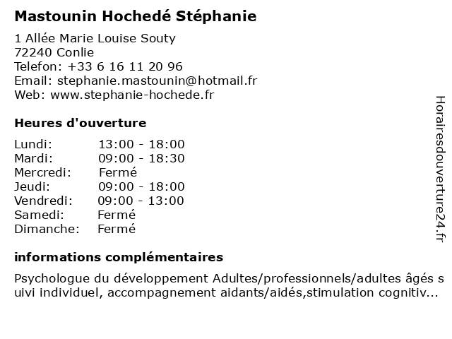 | Lundi | 13:00-18:00 |
