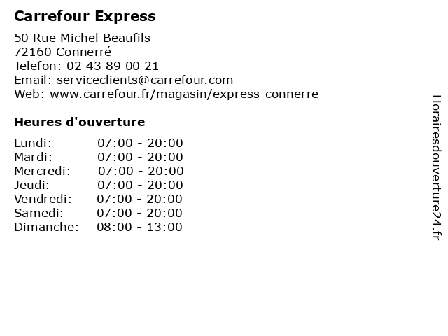 1 Carrefour Express (Distance: 18,07 km) 18 Rue des Sablons, 72320 Vibraye alimentation, carrefour, express, magasin discount, market, supermarché 2 Carrefour Express (Distance: 18,28 km) 8-10 Place Carnot, 72400 La Ferté-Bernard alimentation, carrefour, express, magasin discount, market, supermarché 3 Carrefour Location (Distance: 0,06 km) - Route de Paris, 72160 Connerré agence, carrefour, location, utilitaires, véhicules 4 Carrefour Market (Distance: 0,06 km) - Route De Paris, 72160 Connerre alimentation, carrefour, magasin discount, market, supermarché 5 Carrefour Drive (Distance: 1,10 km) 108 Rue de Paris, 72160 Connerre carrefour, drive, hypermarche, marche, market 6 Coccinelle Express (Distance: 17,96 km) 39-43 Rue Victor Hugo, 72400 La Ferté-Bernard alimentation, coccinelle, express, magasin, superette, supermarché, épicerie |