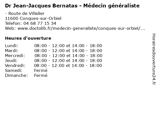 | Lundi | 08:00-12:00 et 14:00-18:00 |