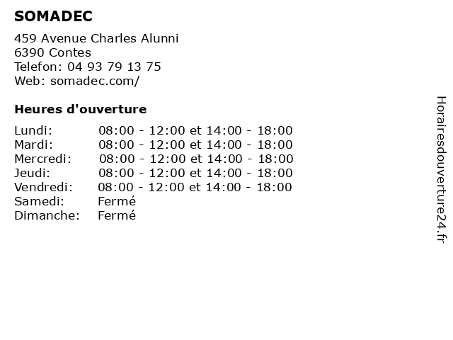 | Mercredi | 08:00-12:00 et 14:00-18:00 |