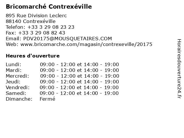 1 Bricomarché (Distance: 0,61 km) - Rue Division Leclerc, 88140 Contrexeville bonnes affaires, bricolage, bricomarché, decoration, jardin, materiaux 2 3 Bricomarché Neufchâteau (Distance: 24,43 km) 760 Rue Paul Melin, 88300 Neufchâteau bricomarché, neufchâteau 5 Bricomarché Corbenay (Distance: 45,58 km) Avenue Jacques Parisot, 70320 Corbenay bricomarché, corbenay 6 Bricomarché Ecrouves (Distance: 54,33 km) Avenue du 15eme Génie, 54200 Écrouves bricomarché, ecrouves |