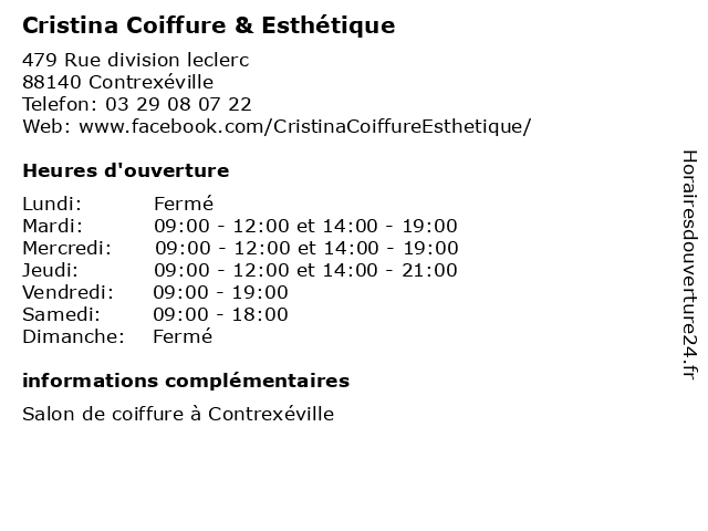 | Mercredi | 09:00-12:00 et 14:00-19:00 |