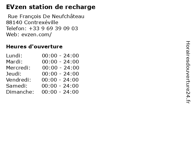1 EVzen station de recharge (Distance: 23,61 km) Champ le Roi, 88300 Neufchâteau de, evzen, recharge, station 2 EVzen station de recharge (Distance: 43,23 km) 5 Rue De La Bazaine, 88000 Épinal de, evzen, recharge, station 3 EVzen station de recharge (Distance: 54,81 km) 18 Rue Antoine de Saint-Exupéry, 54710 Fléville-devant-Nancy de, evzen, recharge, station 4 Izivia - Bornes de recharges électriques (Distance: 0,15 km) 42D Rue du Capitaine Albert Littolff, 88140 Contrexéville automobile, borne, bornes, de, izivia, recharge, recharges, électrique, électriques 5 TotalEnergies Access - RELAIS DU VAIR (Distance: 0,80 km) 389 RUE DE LA DIVISION LECLERC, 88140 CONTREXEVILLE access, du, gas station, relais, station service, tankstelle, total, totalenergies, vair 6 Intermarché station-service Contrexeville (Distance: 1,46 km) 630 Avenue des Pierrottes, 88140 Contrexéville contrexeville, intermarché, service, station |