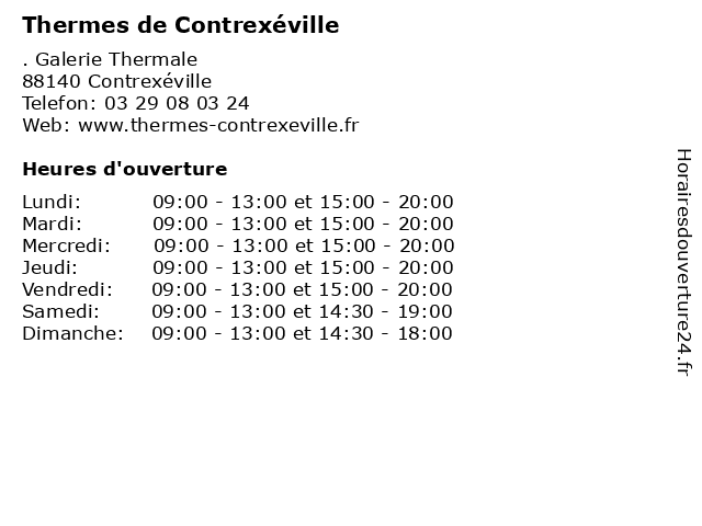 | Dimanche | 09:00-13:00 et 14:30-18:00 |