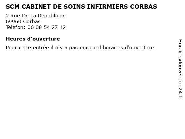 | Appeler SCM CABINET DE SOINS INFIRMIERS CORBAS | |