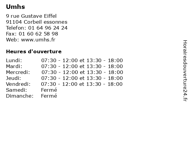 | Lundi | 07:30-12:00 et 13:30-18:00 |