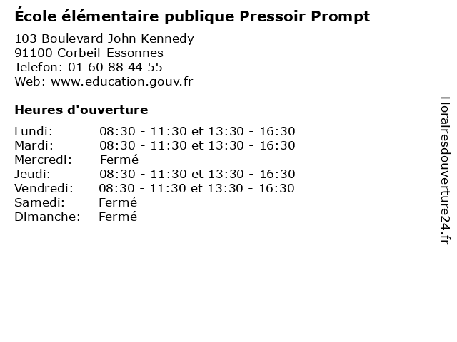 | Lundi | 08:30-11:30 et 13:30-16:30 |