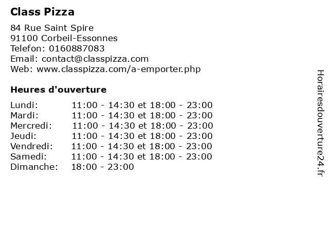 | Lundi | 11:00-14:30 et 18:00-23:00 |