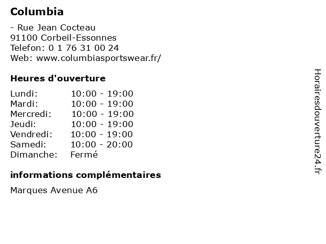| Mercredi | 10:00-19:00 |