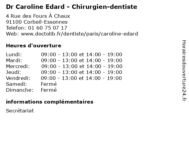 | Lundi | 09:00-13:00 et 14:00-19:00 |