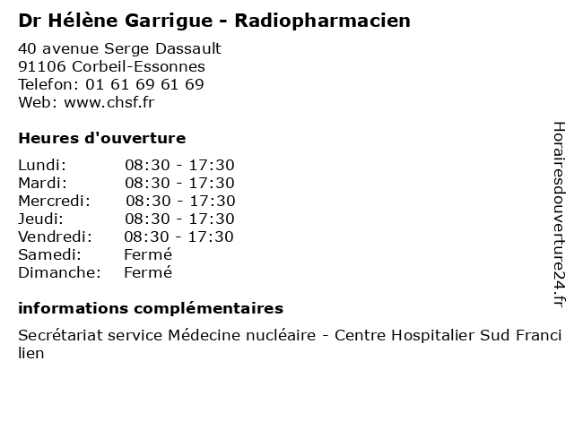 Termes de recherche pour Dr Hélène Garrigue - Radiopharmacien:corbeil, helene, sud, santé, ch, nucléaire, docteur, essonnes, dr, garrigue, francilien, radioactives, radiopharmacien |