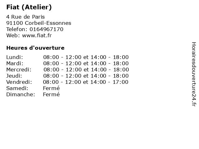1 Fiat (Atelier) (Distance: 0,87 km) 66-68 Route de Lisses, 91100 Corbeil-Essonnes atelier, automobiles, concéssionnaire, fiat, garage, motos 2 Fiat (Atelier) (Distance: 8,23 km) 155 Route Nationale 7, 91170 Viry Chatillon atelier, automobiles, concéssionnaire, fiat, garage, motos 3 Fiat (Atelier) (Distance: 9,68 km) 51 Avenue du General Leclerc, 91800 Brunoy atelier, automobiles, concéssionnaire, fiat, garage, motos 4 Fiat (Atelier) (Distance: 11,99 km) 9 Rue du Roussillon, 91220 Bretigny sur Orge atelier, automobiles, concéssionnaire, fiat, garage, motos 5 Fiat (Atelier) (Distance: 12,67 km) 1 Route de Ballancourt, 91760 Itteville atelier, automobiles, concéssionnaire, fiat, garage, motos 6 Fiat (Atelier) (Distance: 12,85 km) 560 Impasse de l'Epinet, 77240 Vert Saint Denis atelier, automobiles, concéssionnaire, fiat, garage, motos |
