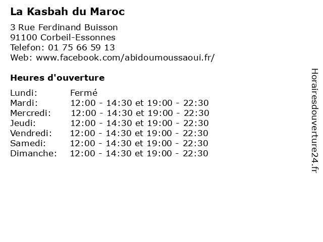 | Mardi | 12:00-14:30 et 19:00-22:30 |