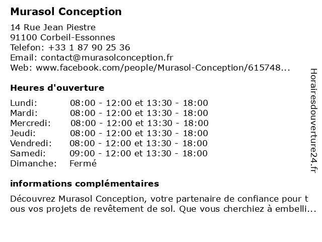 | Samedi | 09:00-12:00 et 13:30-18:00 |