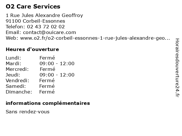 | 1 Body Care (Distance: 6,54 km) 20 Avenue du Général de Gaulle, 91450 Soisy-sur-Seine body, care, institut de beauté, manucure, maquillage, soins, épilations 2 O2 Home Services (Distance: 9,59 km) 42 Rue de l'Innovation, 77550 Moissy-Cramayel domicile, home, o2, services 3 O2 Home Services (Distance: 12,07 km) 15 C Rue du Gord, 91800 Boussy-Saint-Antoine aide aux seniors, garde d'enfants, handicap, home, incapacite temporaire, jardinage, menage repassage, o2, services 4 O2 Home Services (Distance: 12,42 km) 256 Boulevard Henri Barbusse, 91210 Draveil aide aux seniors, garde d'enfants, handicap, home, incapacite temporaire, jardinage, menage repassage, o2, services 6 O2 Home Services (Distance: 15,88 km) 10 Rue du Docteur Oge, 91310 Montlhéry aide aux seniors, garde d'enfants, handicap, home, incapacite temporaire, jardinage, menage repassage, o2, services |