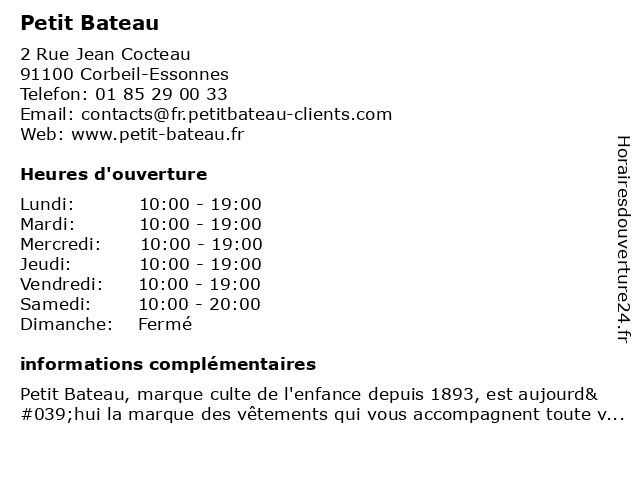 1 Petit Bateau (Distance: 0,12 km) 2 Rue Jean Cocteau, 91100 Corbeil-Essonnes bateau, beaute, chaussures, lingerie, mode enfants, mode femmes, mode hommes, petit, sport 2 Petit Bateau (Distance: 7,08 km) 3 Allée du Préambule, 77127 Lieusaint alimentation, bateau, beauté & santé, culture & loisirs, enfants, high-tech, maison & déco, mode, petit, restaurants 3 Petit Bateau (Distance: 7,42 km) 3 Allée du préambule, 77566 Lieusaint Cedex bateau, magasin de vêtements pour enfants, magasin de vêtements pour femmes, mode, petit 5 Petit Bateau (Distance: 19,03 km) 101 Avenue du Général de Gaulle, 94012 Creteil adultes, bateau, bebe, boutique, enfants, naissance, petit, vetements 6 Le Petit Poucet (Distance: 1,76 km) 2/4 Rue Widmer, 91100 Corbeil-Essonnes caregivers houses, child care, family home, home care, kindergartens, le, micro-nurseries, parental home, petit, poucet |