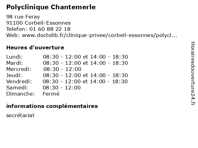 | Mardi | 08:30-12:00 et 14:00-18:30 |