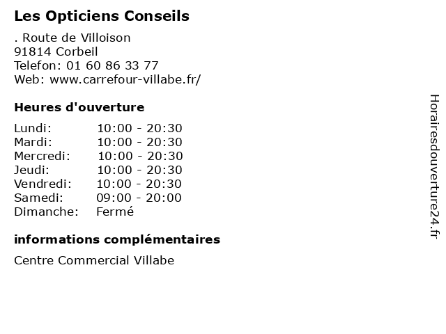 1 Les Opticiens Conseils (Distance: 0,00 km) - Route de Villoison, 91100 Villabé conseils, lentilles, les, lunettes, optic, opticien, opticiens, optique, vision 2 Les Opticiens Conseils (Distance: 2,79 km) 7 rue de Paris, 91100 Corbeil Essonnes conseils, les, lunetier, opticien, opticiens 3 Les Opticiens Conseils (Distance: 5,38 km) 2 Boulevard de l'Europe, 91000 Evry conseils, les, lunetier, opticien, opticiens 4 Les Opticiens Conseils (Distance: 7,61 km) 73 rue Pierre Brossolette, 91130 Ris Orangis conseils, les, lunetier, opticien, opticiens 5 Les Opticiens Conseils (Distance: 10,08 km) 28 Route de Grigny, 91170 Viry Châtillon conseils, les, lunetier, opticien, opticiens 6 Les Opticiens Conseils (Distance: 10,58 km) . Avenue de la Maison Neuve, 91227 Bretigny sur Orge beaute, boutiques, chaussures, conseils, deco, enfants, les, mode femme, mode hommes, opticiens, restaurant, sport |