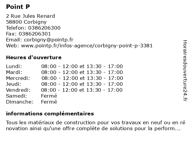 | Samedi | Fermé |