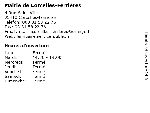 Termes de recherche pour Mairie de Corcelles-Ferrières:de, ferrieres, administration, mairie, corcelles, service public |