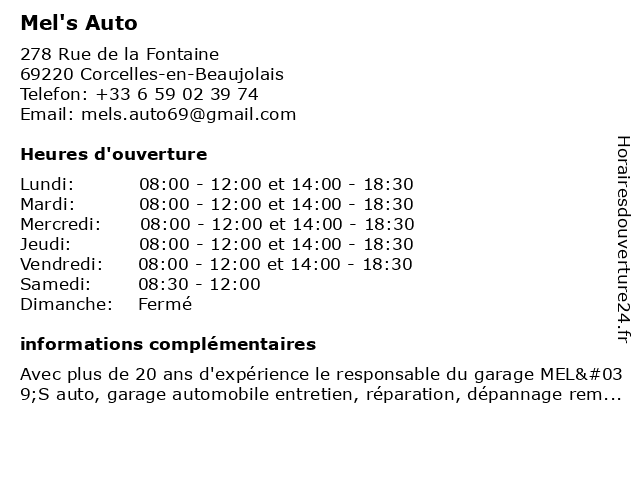 Lundi | 08:00-12:00 et 14:00-18:30 |