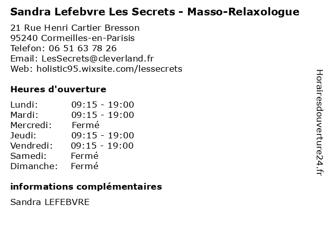 Termes de recherche pour Sandra Lefebvre Les Secrets - Masso-Relaxologue:les, lefebvre, bien-être, santé, secrets, relax, massages, sandra, masso, relaxologue, masso-relaxologue |