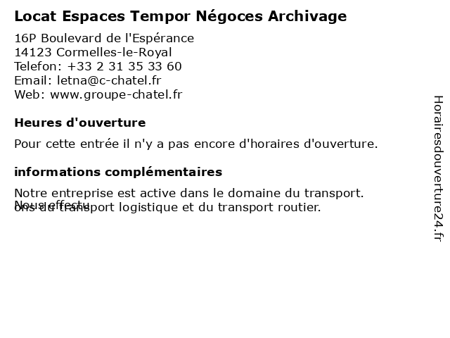 | Appeler Locat Espaces Tempor Négoces Archivage | |