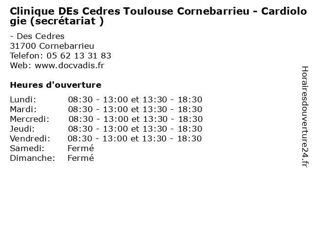 Termes de recherche pour Clinique DEs Cedres Toulouse Cornebarrieu - Cardiologie (secrétariat ):cornebarrieu, des, toulouse, clinique, santé, cèdres, secretariat, docteur, consultation, cardiologie |