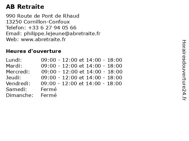 Lundi | 09:00-12:00 et 14:00-18:00 |