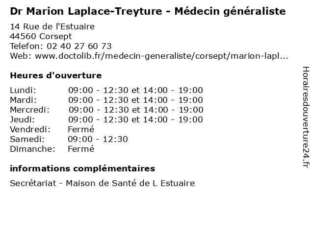 | Lundi | 09:00-12:30 et 14:00-19:00 |
