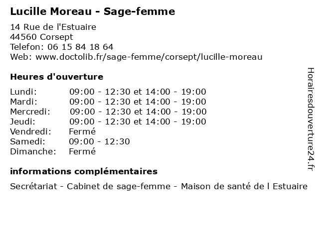 | Mercredi | 09:00-12:30 et 14:00-19:00 |