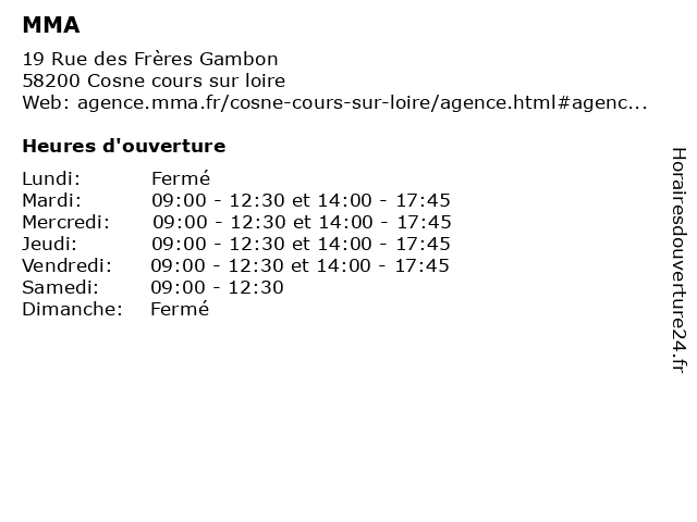 | Mardi | 09:00-12:30 et 14:00-17:45 |