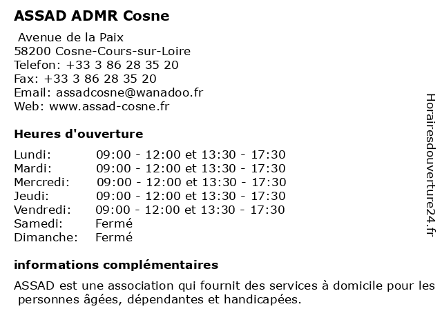 Termes de recherche pour ASSAD ADMR Cosne:cosne, admr, assad |