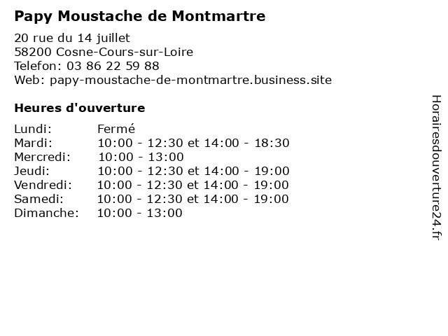 | Mardi | 10:00-12:30 et 14:00-18:30 |