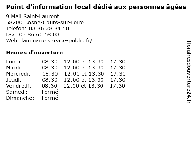 Termes de recherche pour Point d'information local dédié aux personnes âgées:sur, cosne, loire, aux, point, administration, services, cours, publics, d'information, local, dédié, personnes, âgées, organismes |
