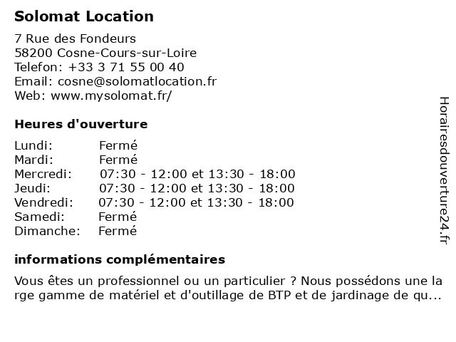 | Vendredi | 07:30-12:00 et 13:30-18:00 |