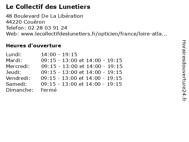 | Samedi | 09:15-13:00 et 14:00-19:15 |