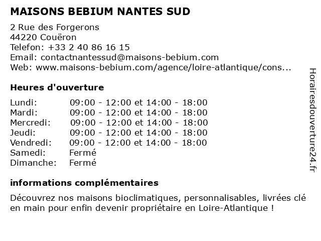 Horaires d'ouverture |