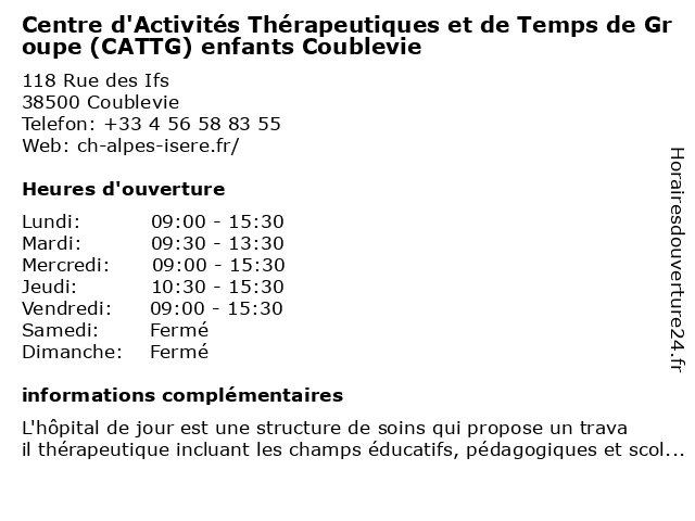 Termes de recherche pour Centre d'Activités Thérapeutiques et de Temps de Groupe (CATTG) enfants Coublevie:et, de, enfants, centre, temps, groupe, coublevie, d'activites, therapeutiques, cattg |