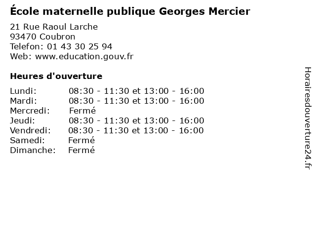 | Mardi | 08:30-11:30 et 13:00-16:00 |